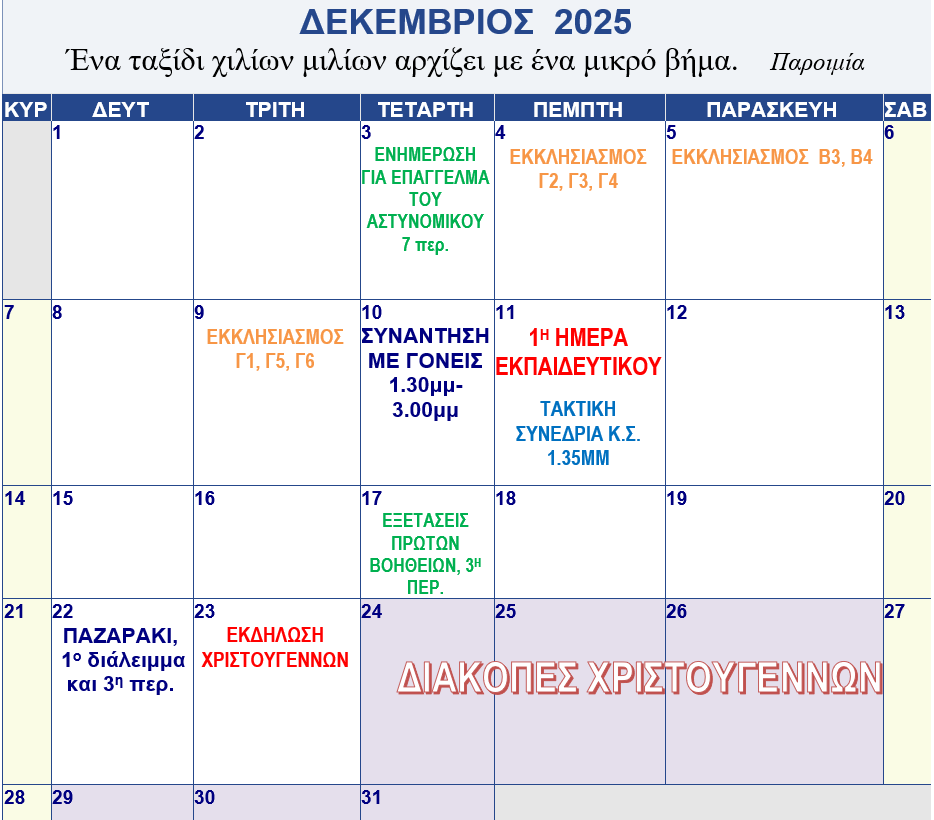 Ωράριο Λειτουργίας - Σχολικές Αργίες