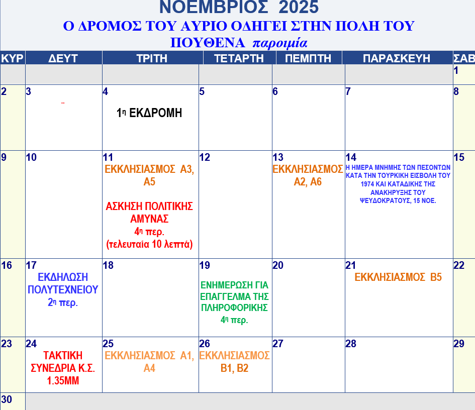 Προγραμματισμός Νοεμβρίου 2025